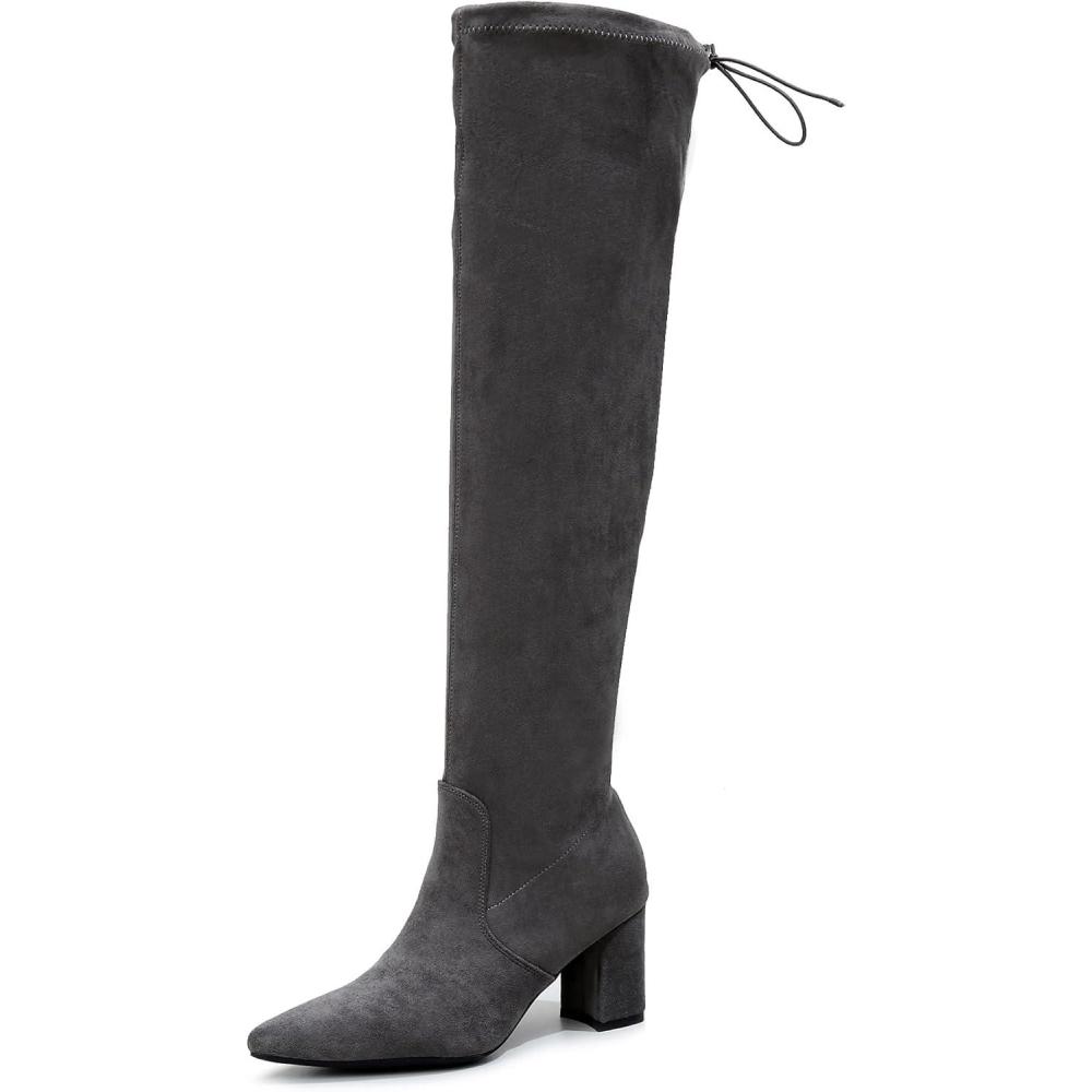 VenusCelia Women’s Charlotte OverKnee Stretchy Boot(Grey)