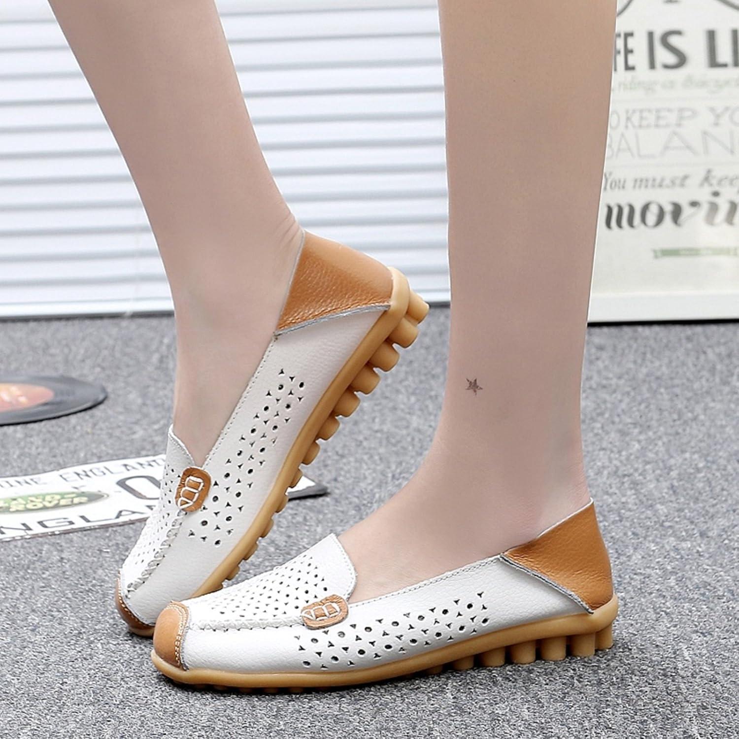 VenusCelia Women’s Floral Comfort Walking Flat Loafer(White (Cutouts))