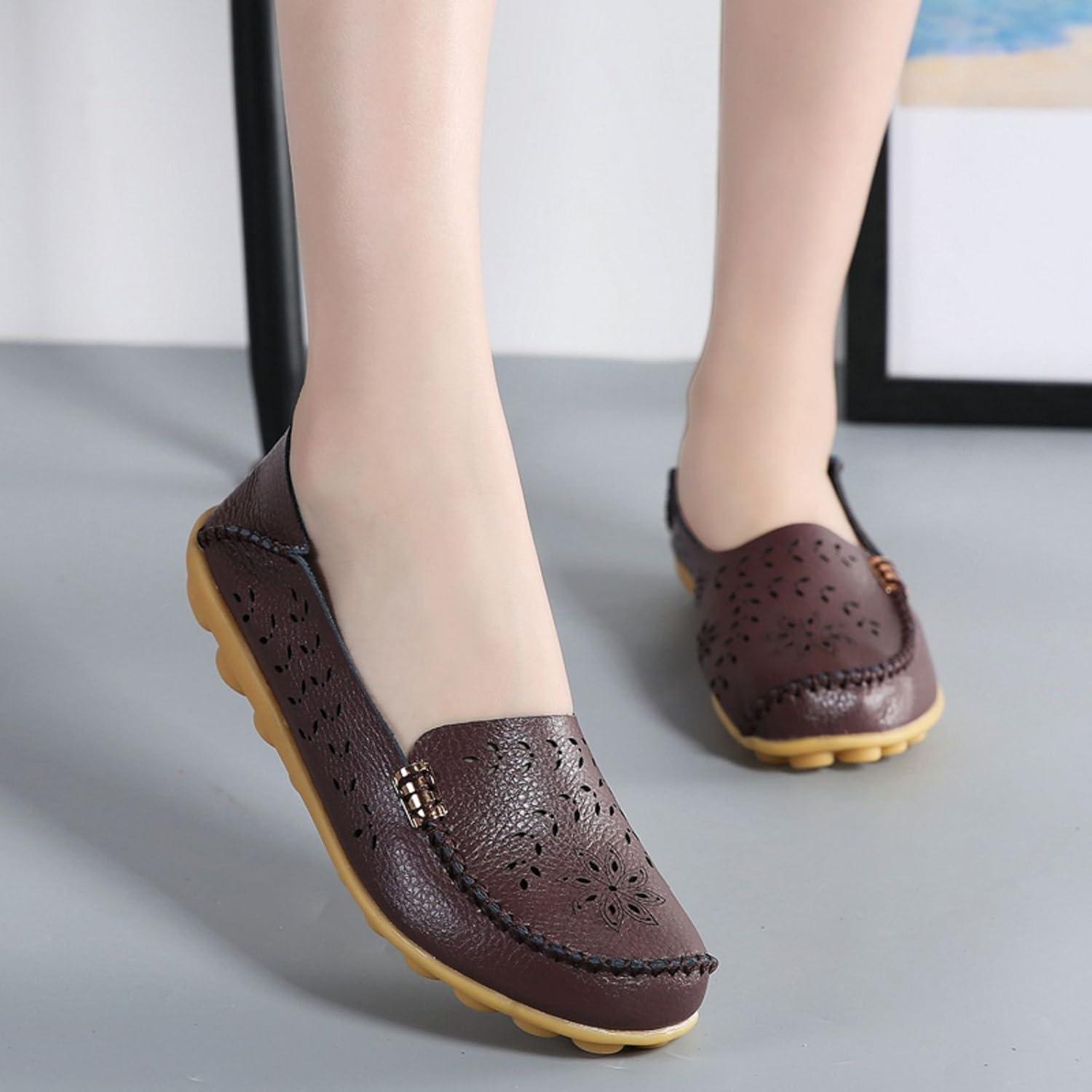 VenusCelia Women’s Natural Comfort Walking Flat Loafer(Brown(cutout))