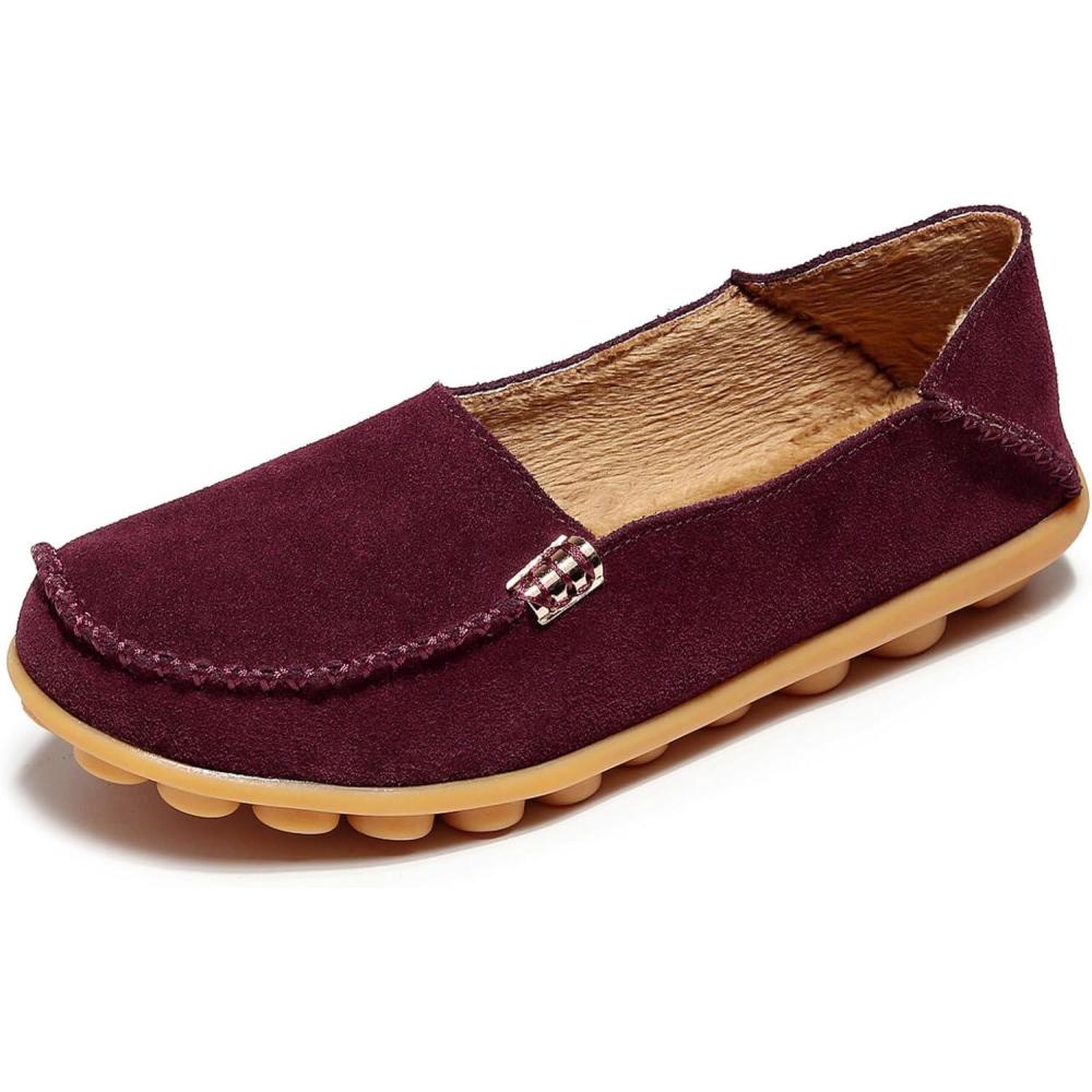 VenusCelia Women's Natural Comfort Walking Flat Loafers are soft and comfy and breathable, firmly with great flexibility. The Simple design with sleek lines, perfect fit you foot, always keep you on comfortable for any activities such as driving or go to work ect. These moccasin style cute shoes can be worn as both casual loafers and slippers. Wear-resisting rubber sole with function of skid resistance, making you lighter when walking.